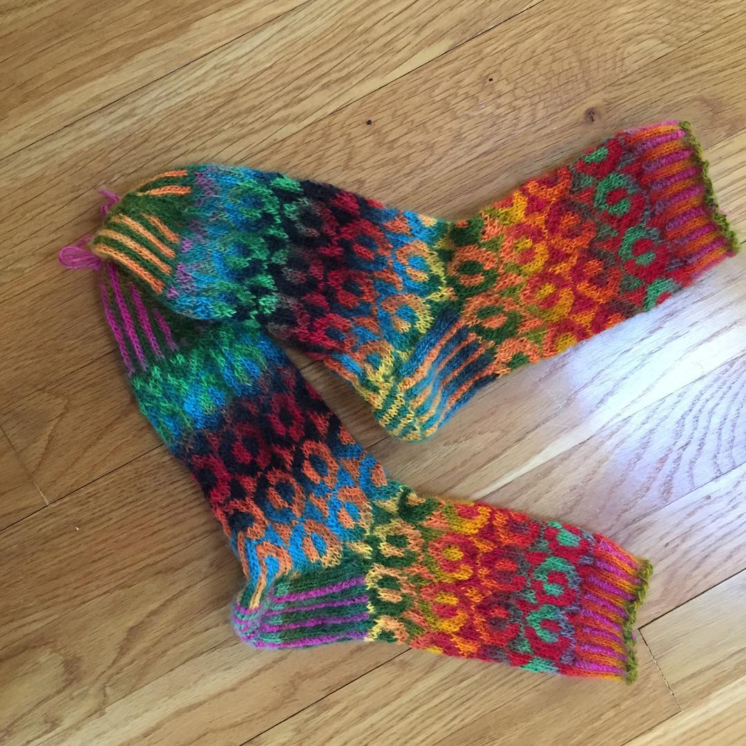 I’ve finished knitting another pair of #chakra socks. I like how I was able to match up the colors. #socks #knitting