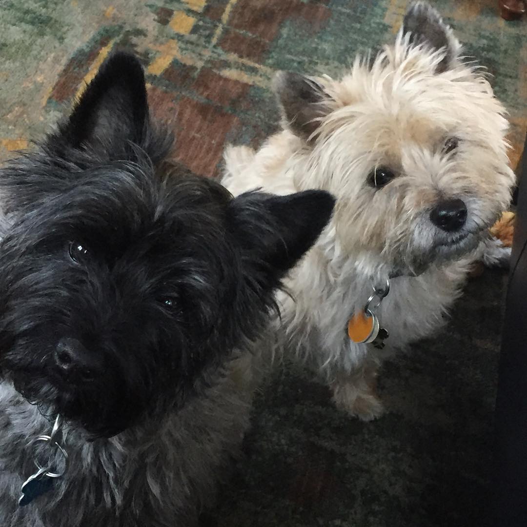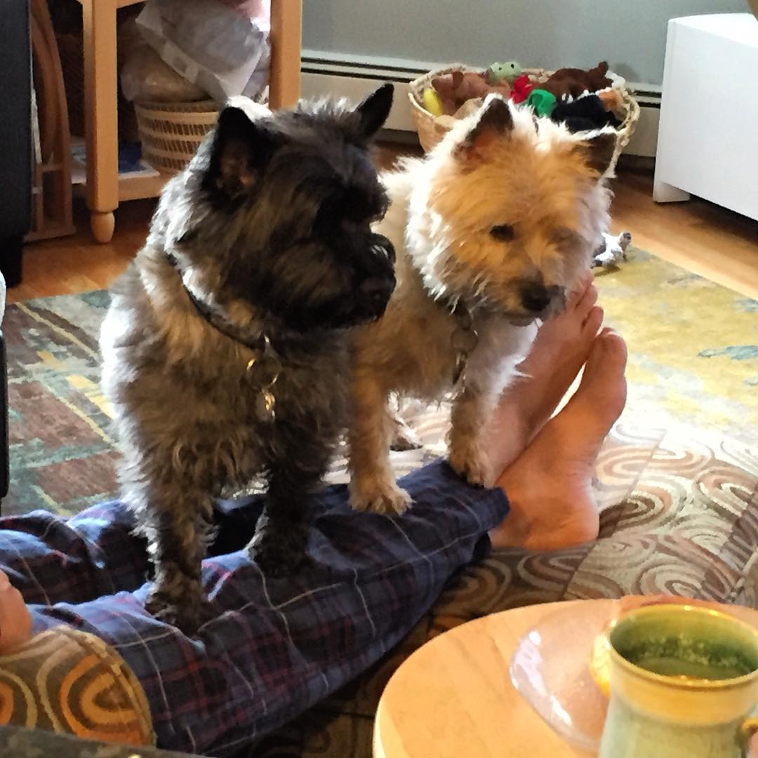 Waiting for their #banana #breakfast #cairnterrier #terrier #milo and #kirby
