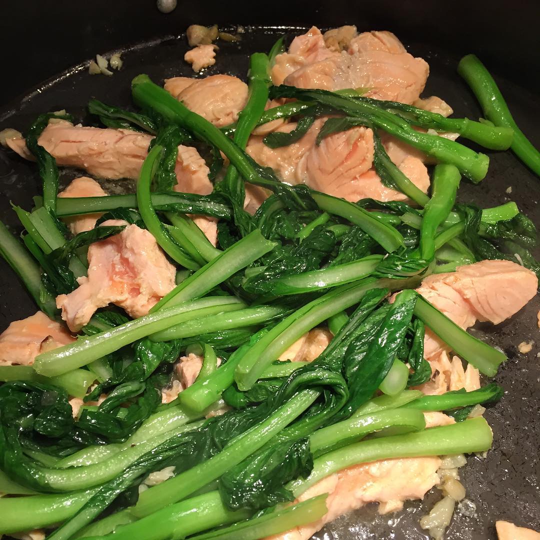 #dinner #Sautéed Chinese greens with #salmon and #quinoa #simple and #easy