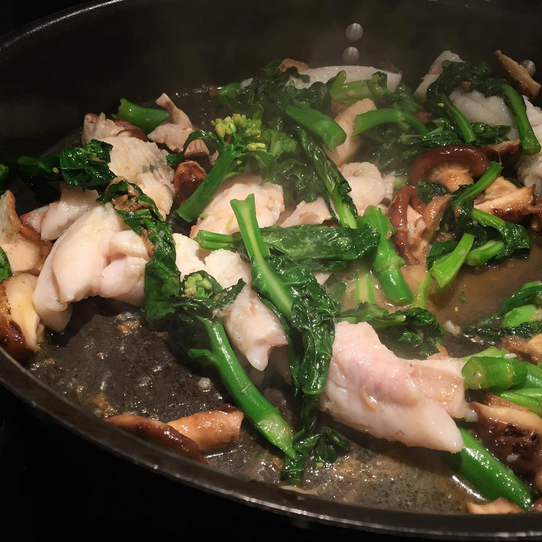 Perch fish with Chinese Broccoli and shiitake mushrooms. #healthy #chinesefood #betterthananyrestaurant #foodie