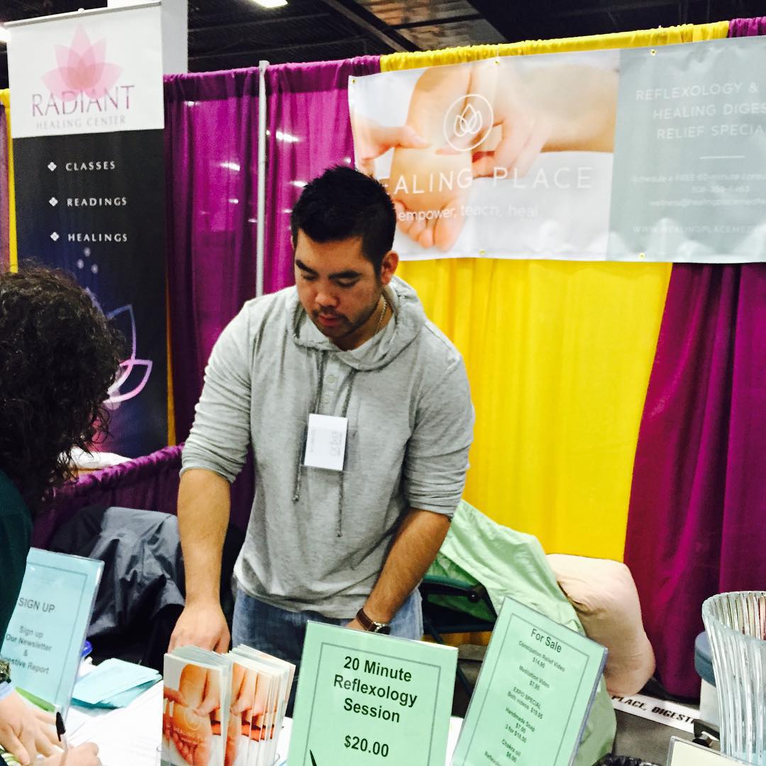 My son Jeffrey helping at my booth. #reflexology #digestive