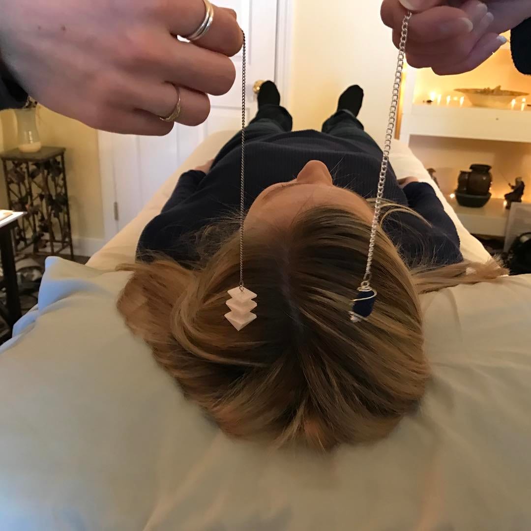 Teaching students how to do an energy pendulum reading during a #Reiki at the #healingplacemedfield #energy school